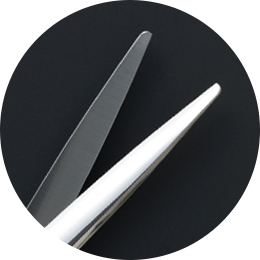 やわらかく自然になじむようなカットラインがブラントカット・チョップカットでつくれます。やや重めの幅広の刃は安定感に優れ、刃先がぶれません。